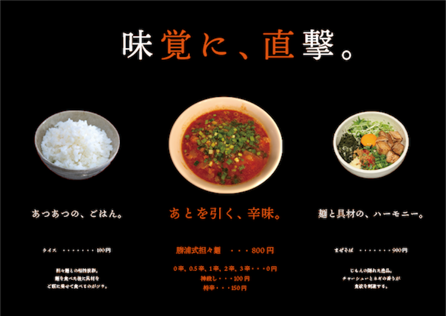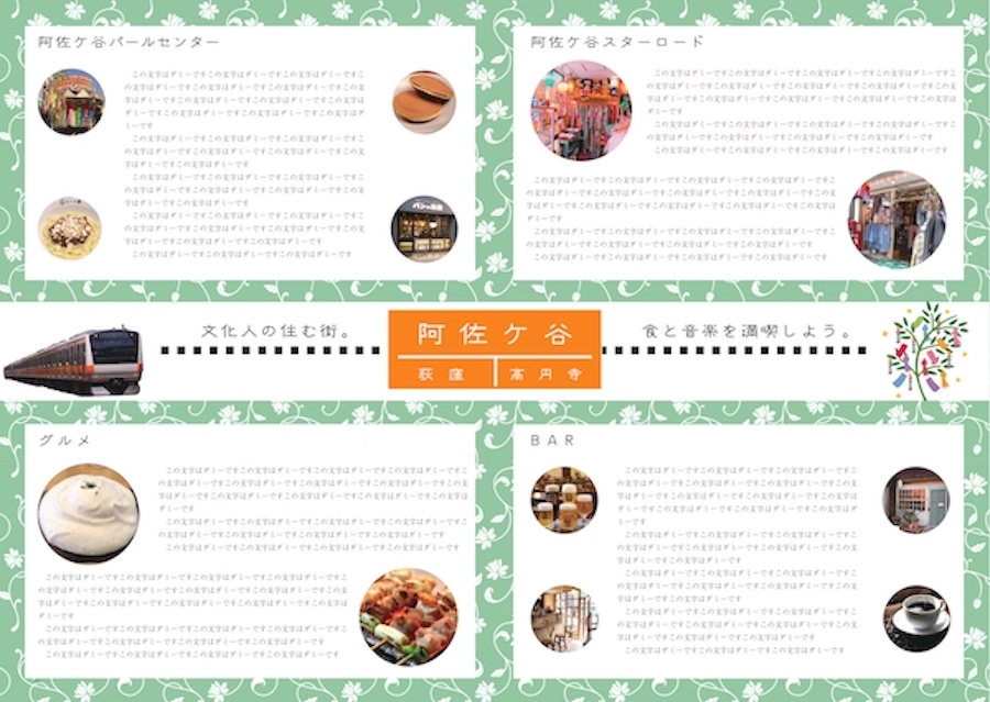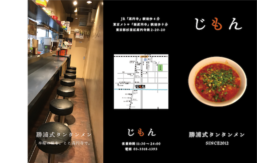 実在のラーメン屋「じもん」に足を運んで写真を撮り、三つ折りチラシを作成。